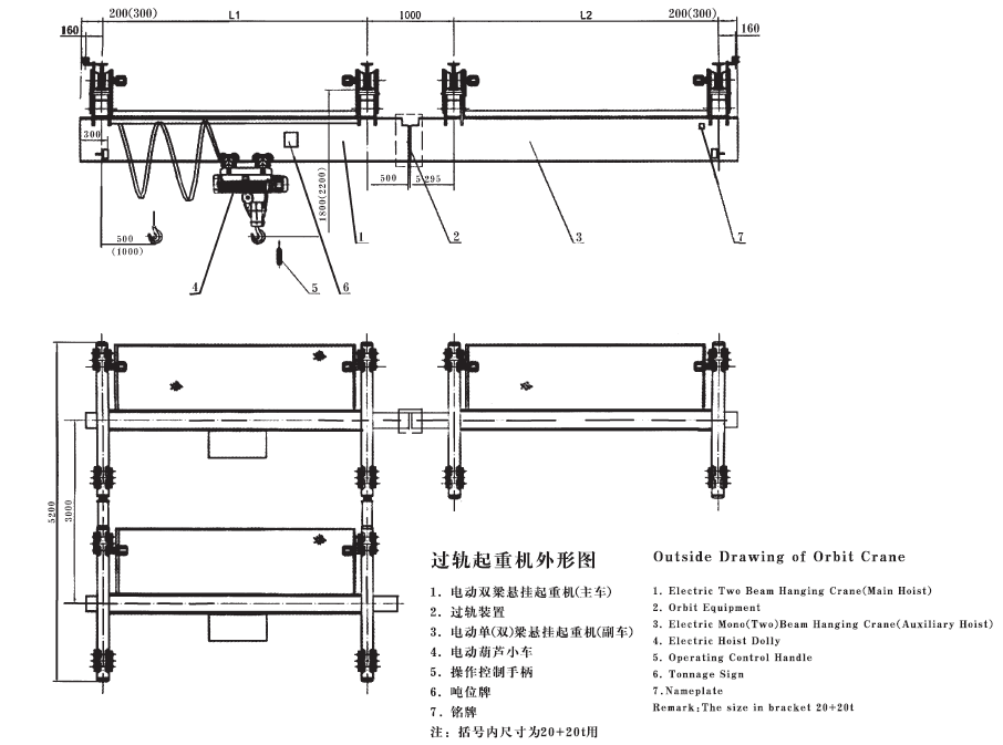 3、 該產(chǎn)品屬于組合設(shè)備,由電動葫蘆小車、電動雙梁懸掛起重機(主車)、(手)電動單(雙)梁懸掛起重機(副車)和過軌裝置組成。