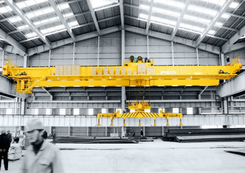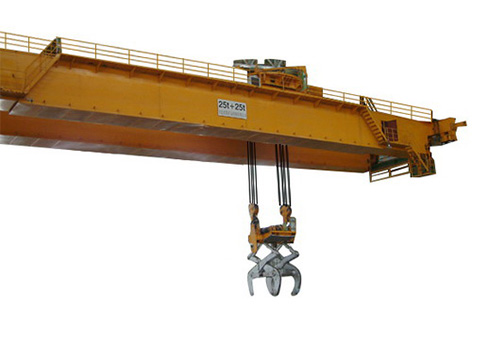 本起重機用于鋼廠、船廠、港口、堆場和倉儲等室內或露天的固定跨間,裝卸及搬運鋼板板坯、型材等物料。